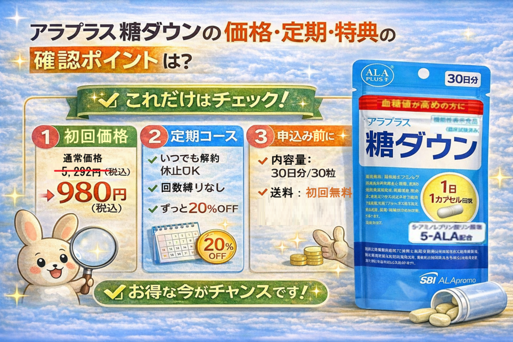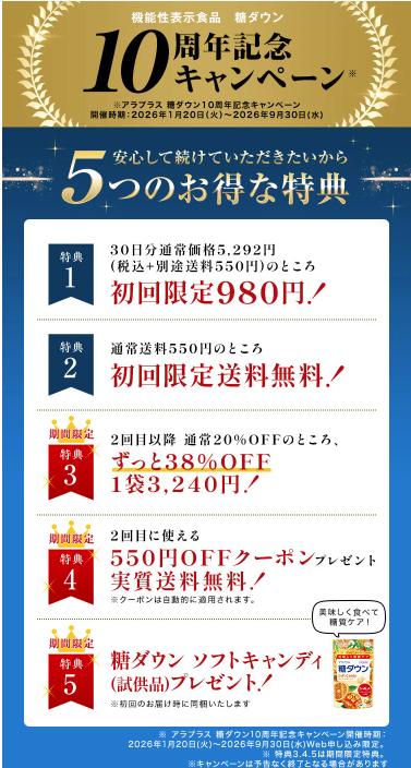 この記事では、アラプラス 糖ダウンの初回価格と、10周年キャンペーンで確認できる内容、