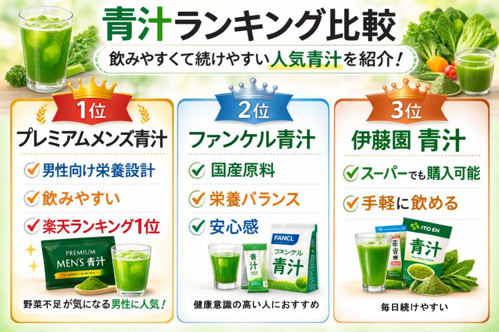 おすすめの青汁をランキング形式で紹介します。