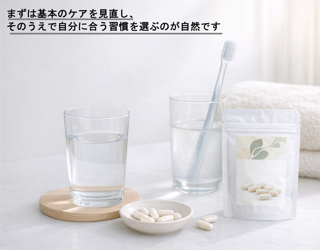 だからこそ、いきなり何か一つに頼るのではなく、毎日の口腔ケアや生活習慣を見直すことが大切です。